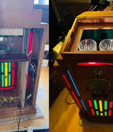 Transformed an old radio into a bar.